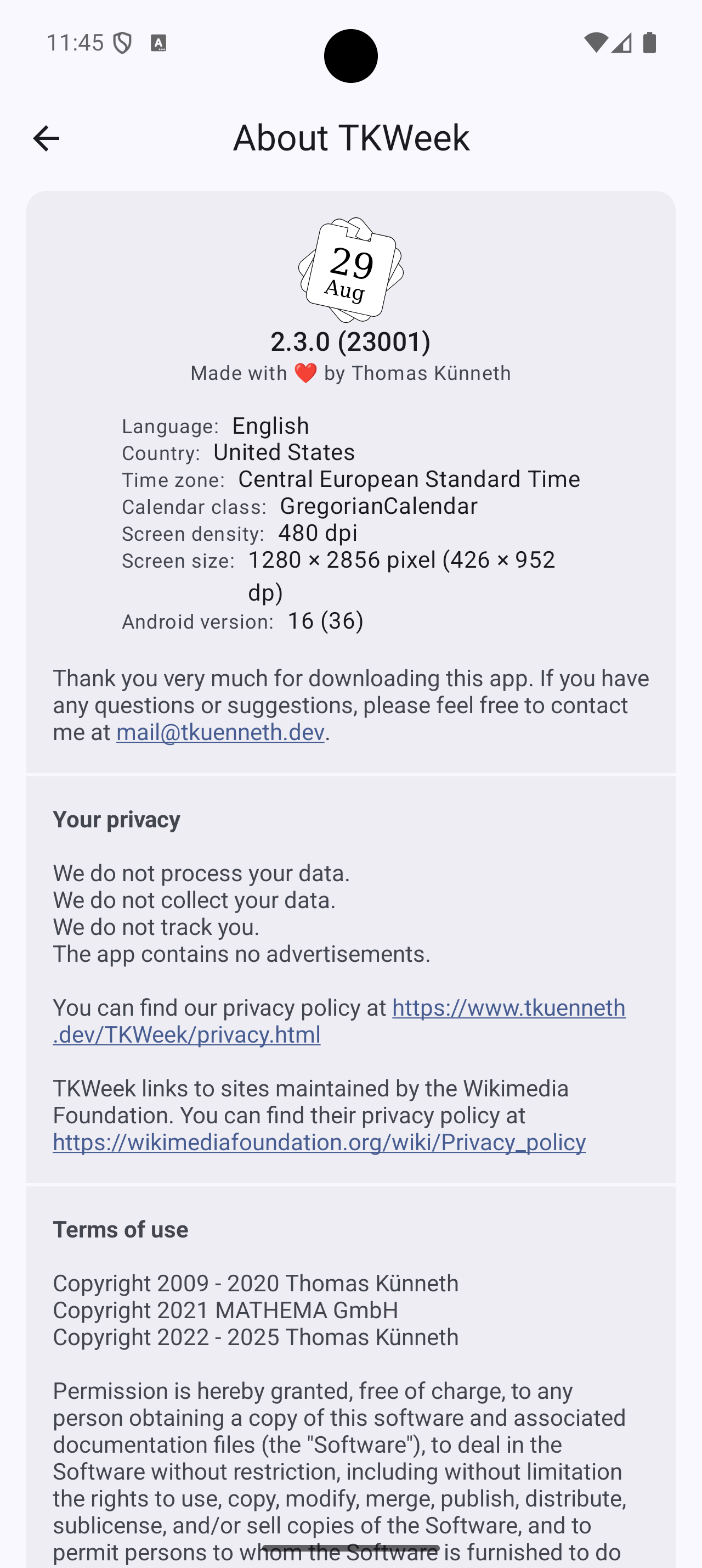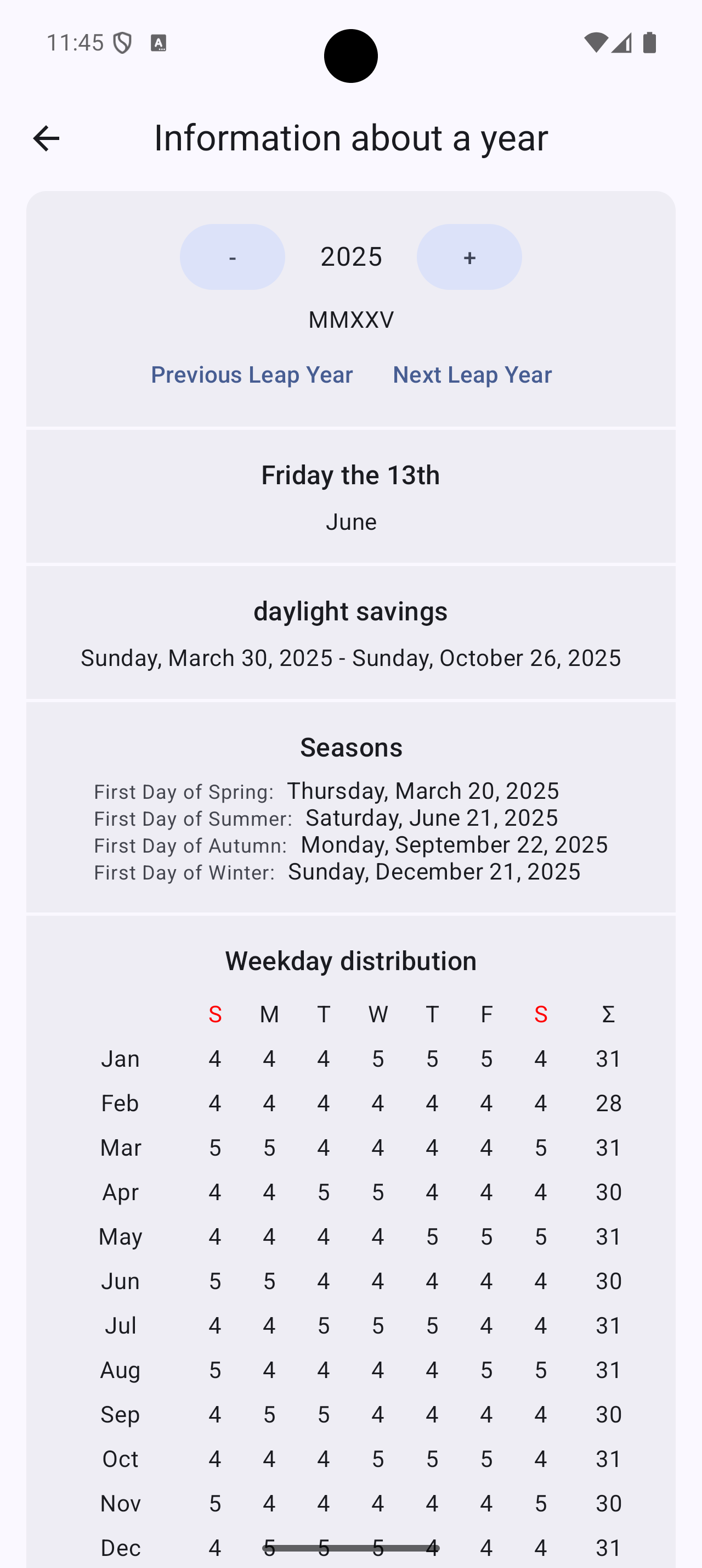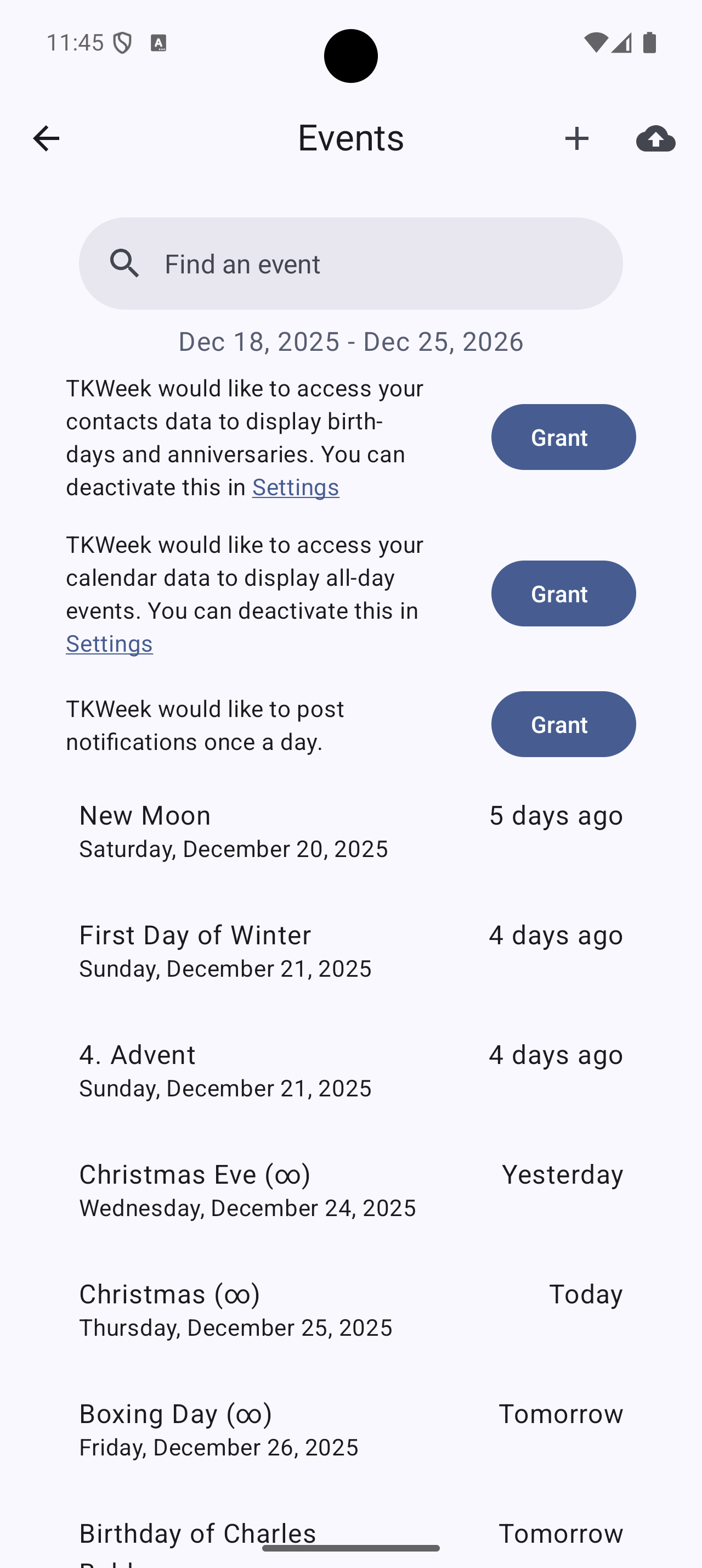 Curious to know when Friday 13th takes place? TKWeek will tell you. The app has many national and international public holidays built in, for example Reformation Day, St. Martin's Day, Christmas, Good Friday, Seven Sleepers Day, Pentecost, Ash Wednesday, and Easter. Some of the other special days TKWeek knows: Ice Saints, Valentine's Day, Mother's Day, Halloween, St. Patrick's Day, Earth Day, All Saints. And there are so many more included.