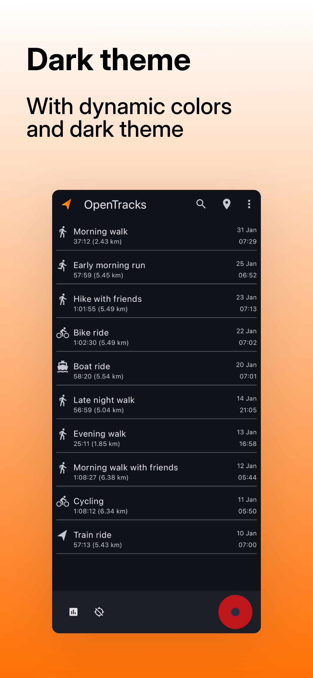 * Dark and light theme, respecting system settings.