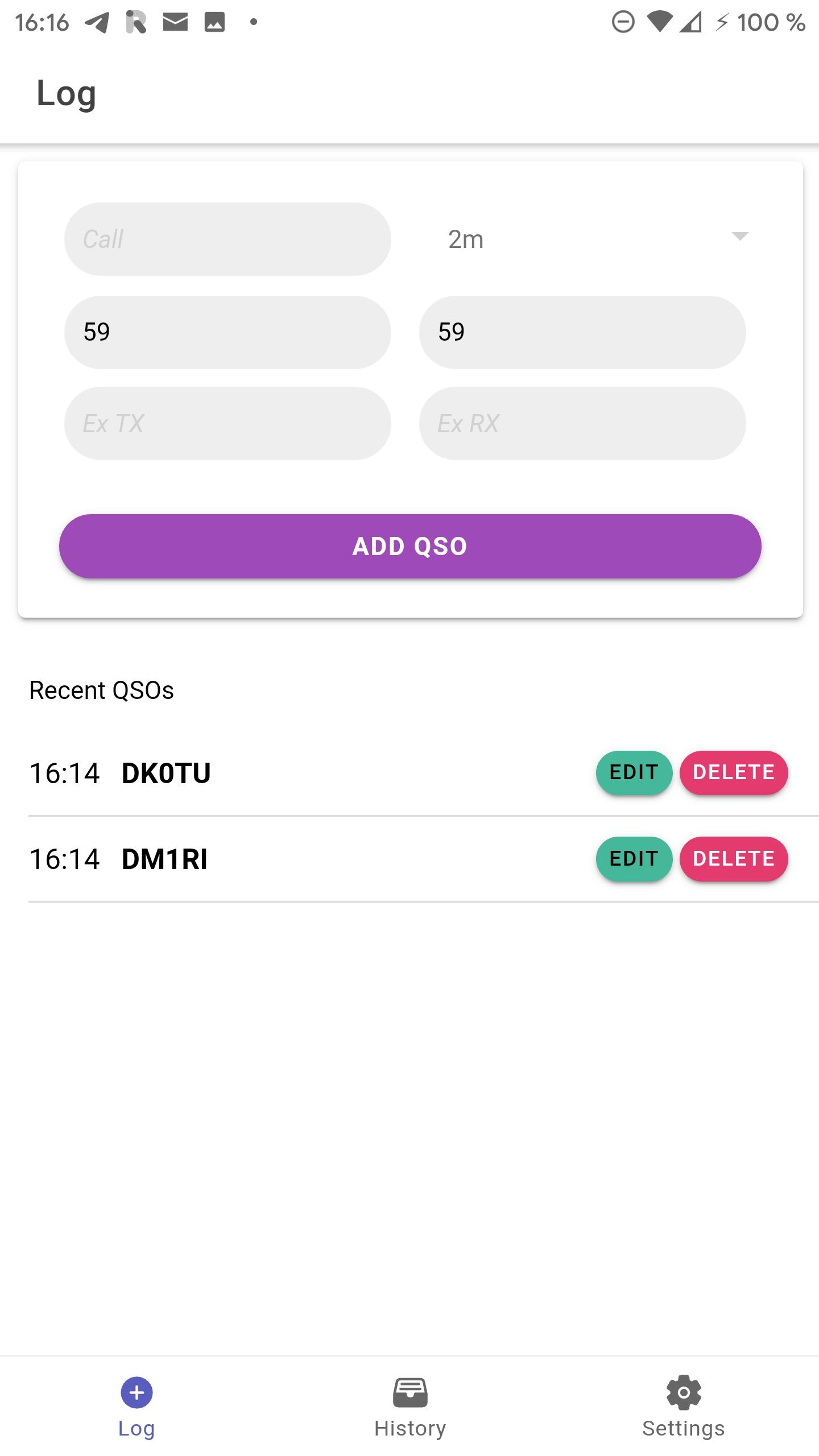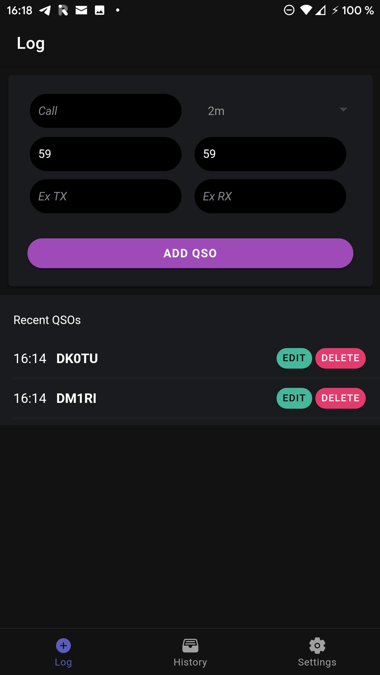 Simple FLOSS Ham Radio logging app for small contests and portable operation. 11 12 Features include: 13 * logging QSOs 14 * edit logged QSOs afterwards 15 * archive and manage different QSO lists 16 * export and share QSO lists as cabrillo 17 * dark mode