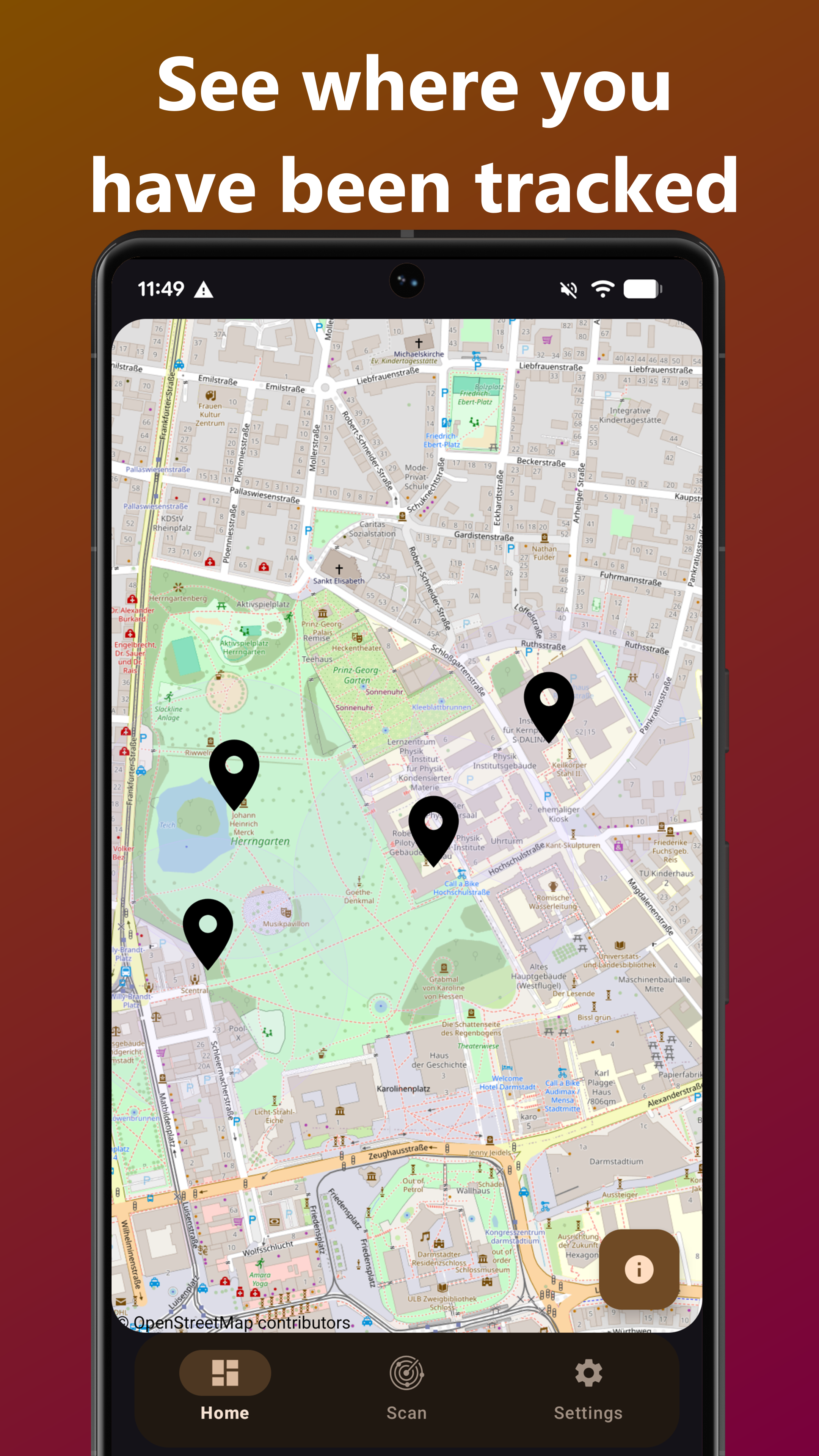 If a tracker is detected in at least three different locations, you will receive a warning. You can adjust the security level in the settings to receive even faster alerts.
