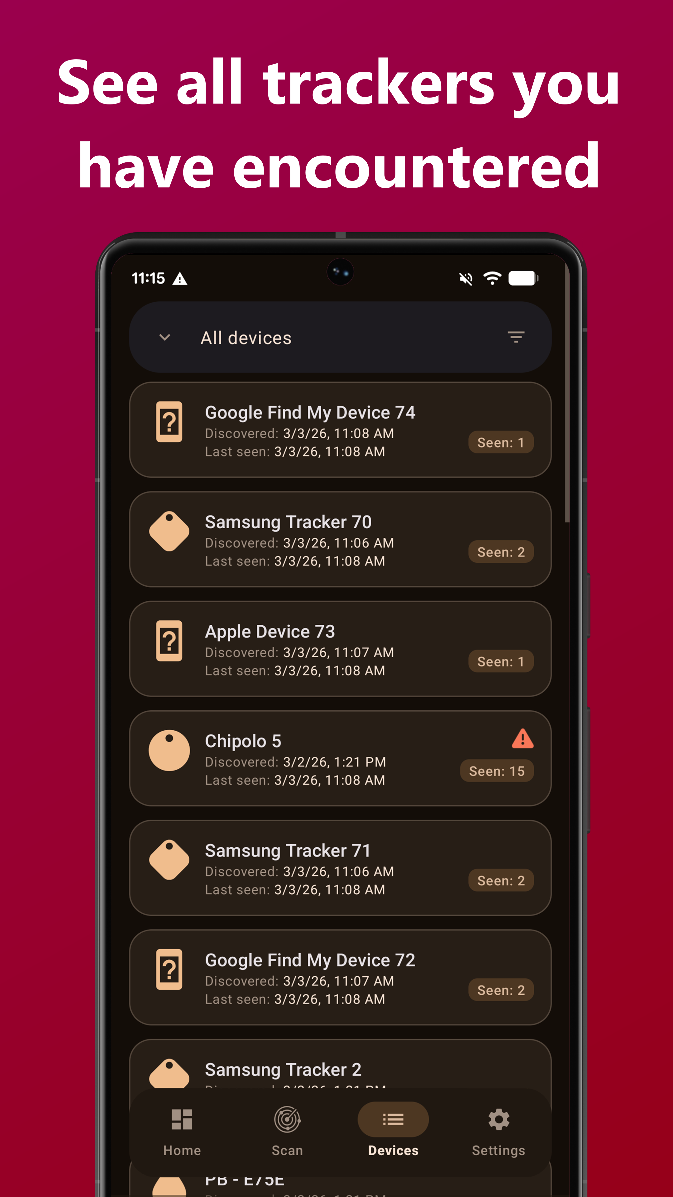 These trackers are often no larger than a coin and are unfortunately misused to secretly track people. Since each tracker works differently, you would typically need multiple apps to detect unwanted tracking.