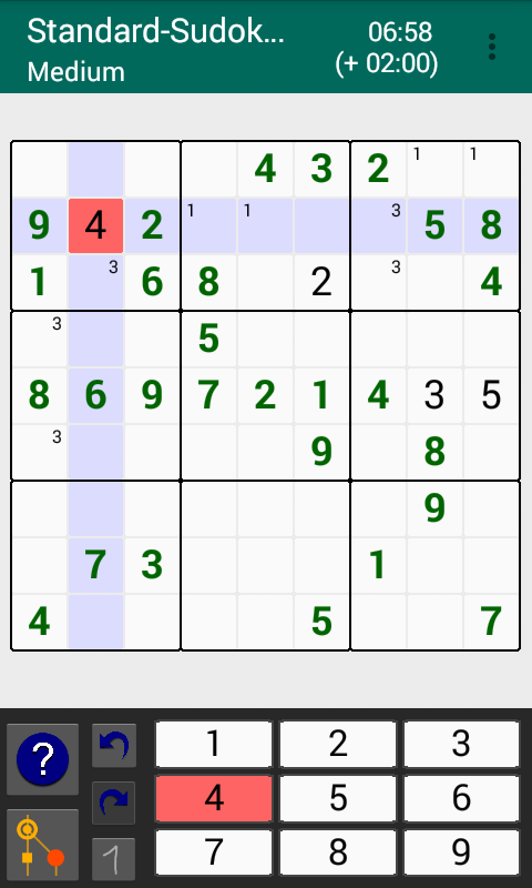 Play many sudoku types such as 16x16, squiggly or Samurai. There are many assistances available, like back and forth, solve specific field ore back to last correct status. Also, every state of the game is recorded in the history. Also offers gesture input (draw number on the screen).