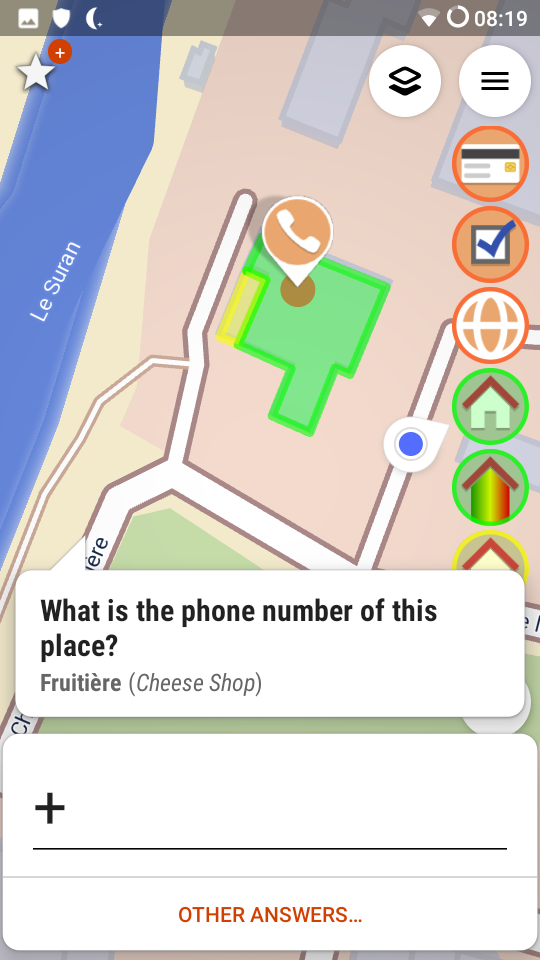 ⇒ OpenStreetMap.org, StreetComplete.app, Osmose.OpenStreetMap.fr to get quests, upload data, etc.