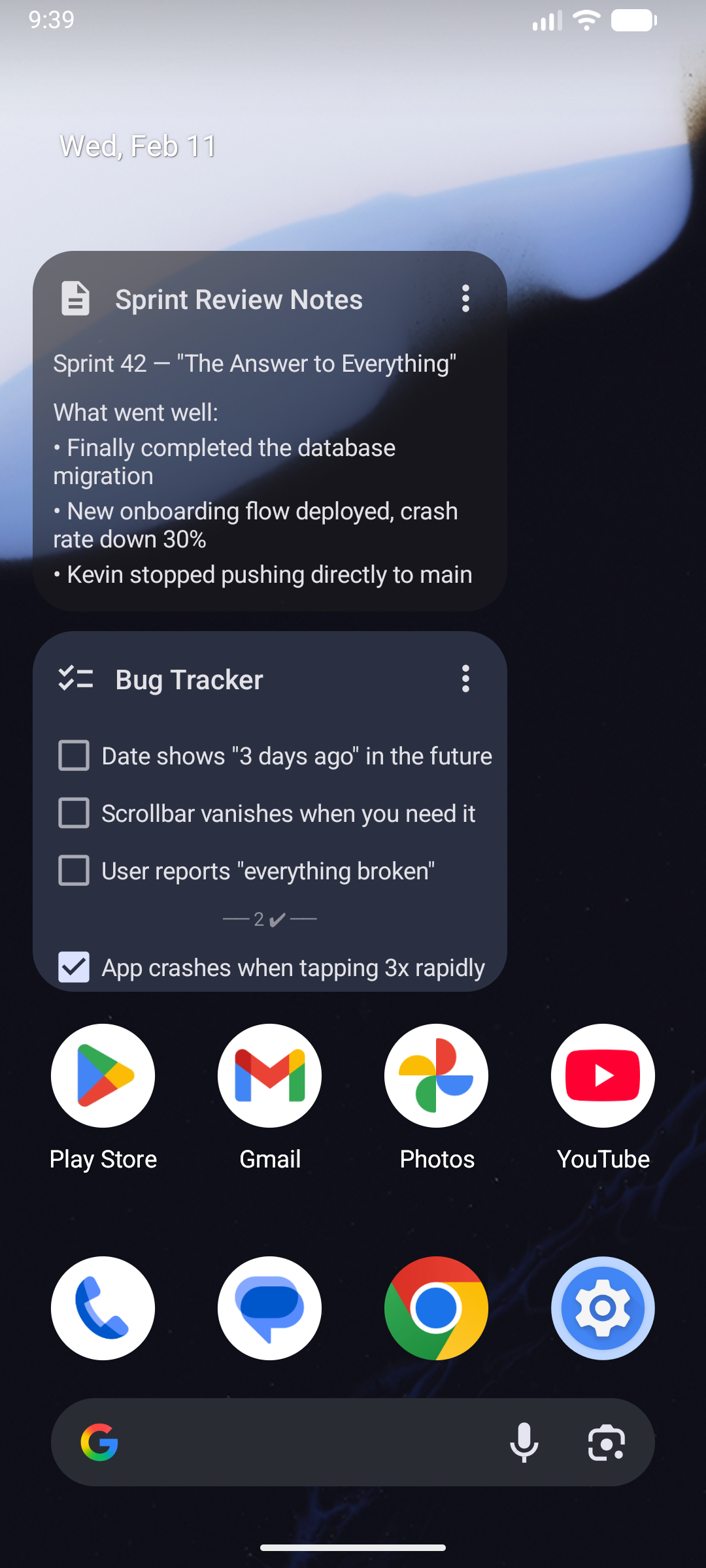 • Homescreen widgets (quick-note, checklist with interactive checkboxes)