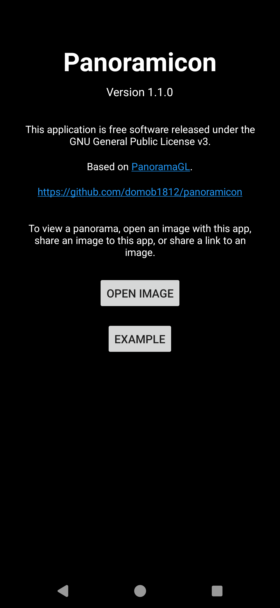 • Open panoramas by sharing images or links to the app or using "Open with"