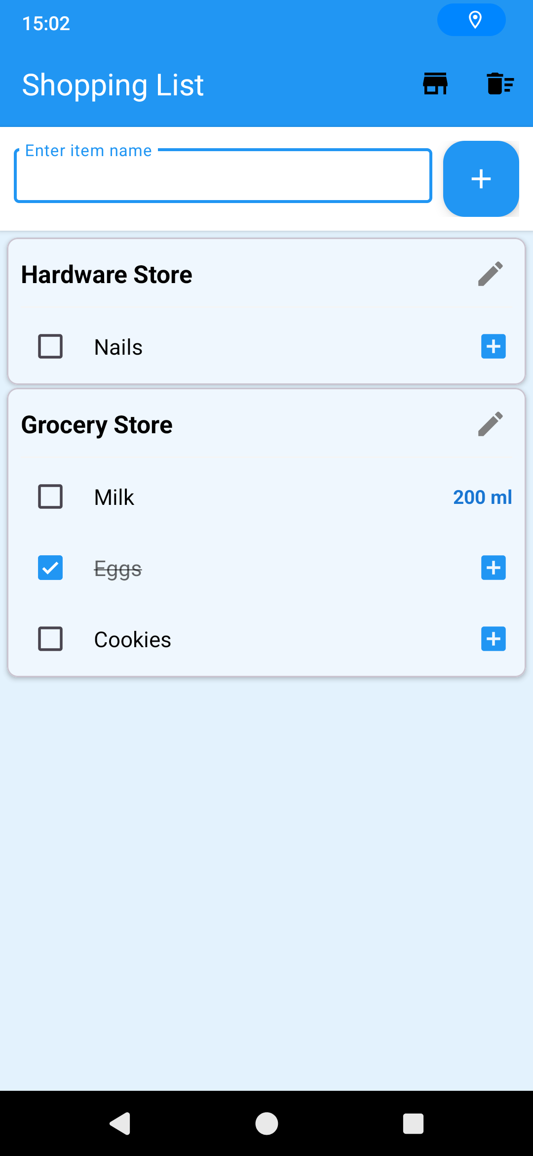 A simple shopping list app with shop grouping and item ordering.
