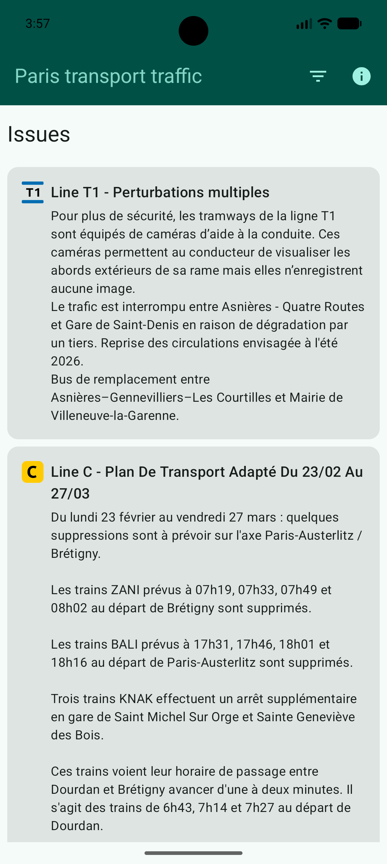 This application is not official and is not endorsed or approved by Île-de-France Mobilités, RATP, SNCF or any other transport network company.The pictograms of the lines are from Île-de-France Mobilités (https://data.iledefrance-mobilites.fr/explore/dataset/emplacement-des-gares-idf/information/) and are under the "Licence Ouverte v2.0 (Etalab)" license (https://www.etalab.gouv.fr/wp-content/uploads/2017/04/ETALAB-Licence-Ouverte-v2.0.pdf).