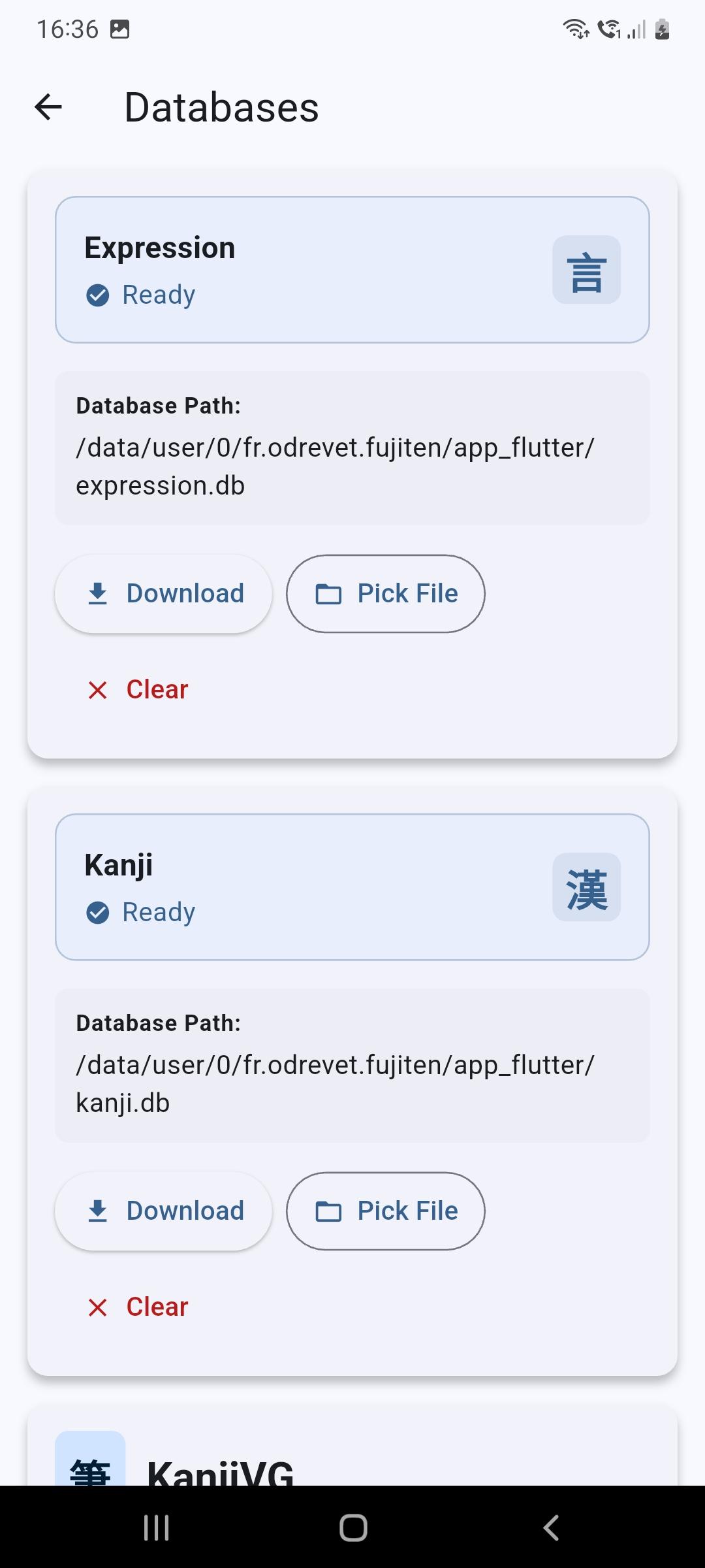 The databases can be downloaded and installed from fujiten via the "settings/databases" menu or by downloading the database manually from