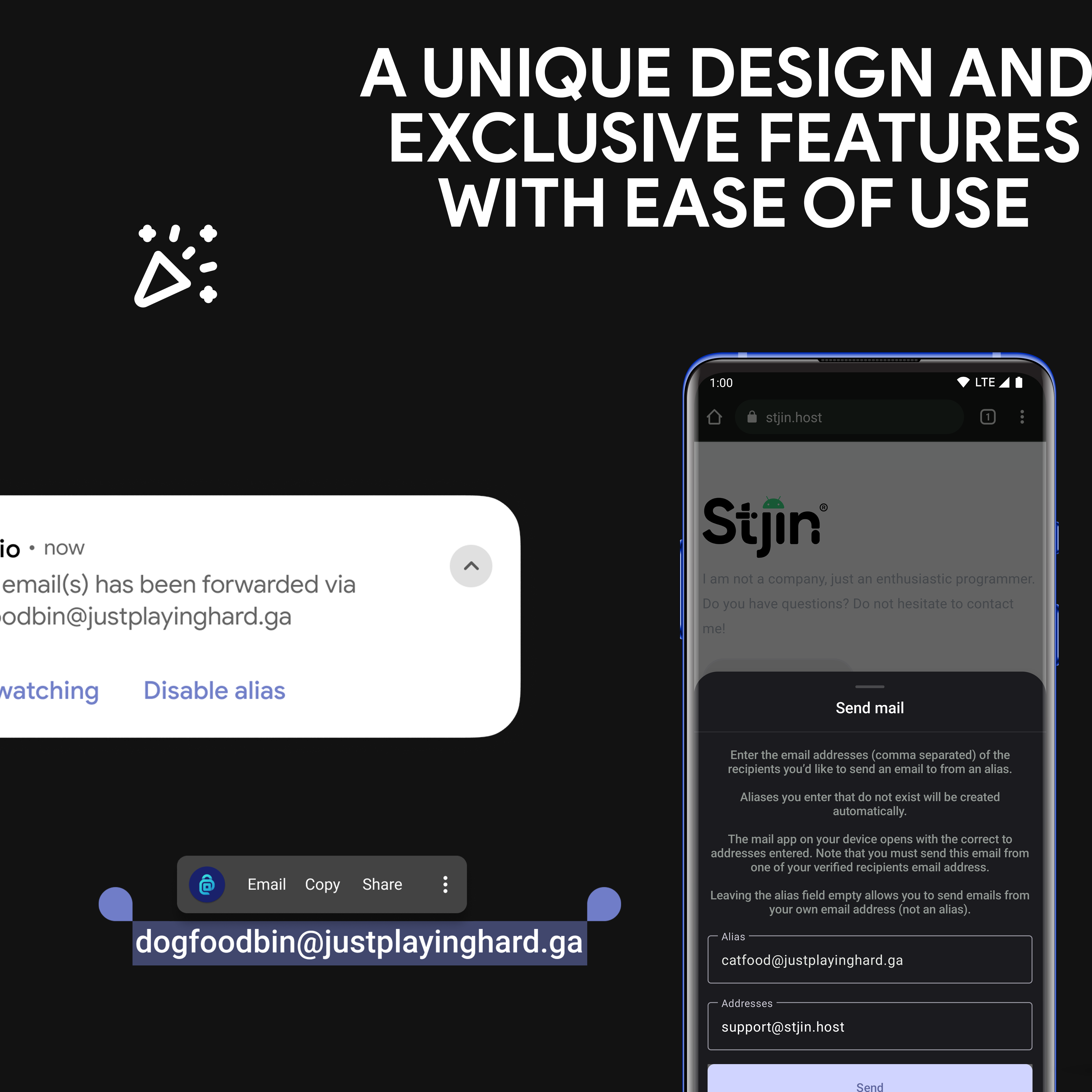 - Manage and create aliases on the go with the Wear OS app, including a tile for quick access to your favorite aliases!