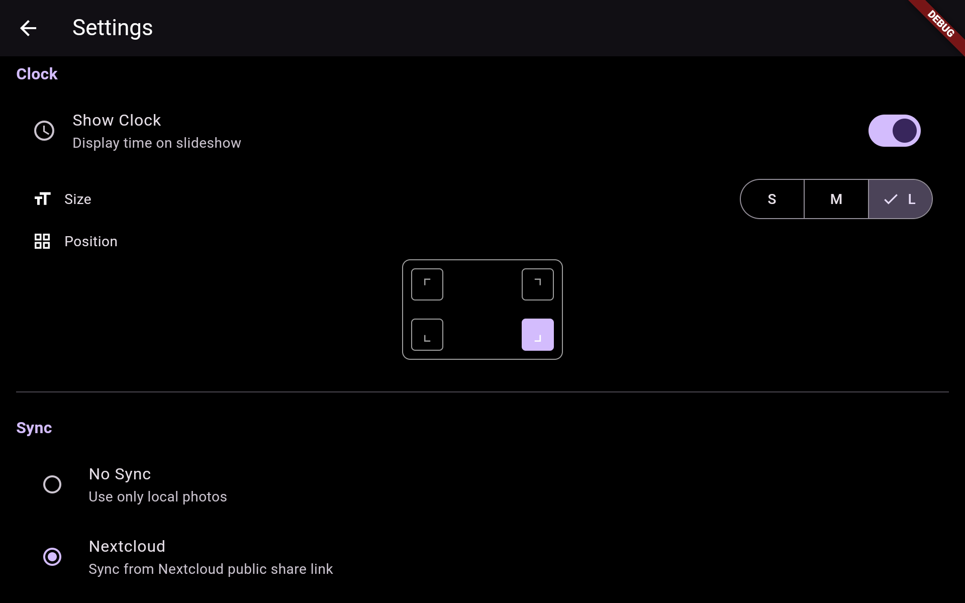 Simple Settings – Configure slide duration, transition speed, and sync interval