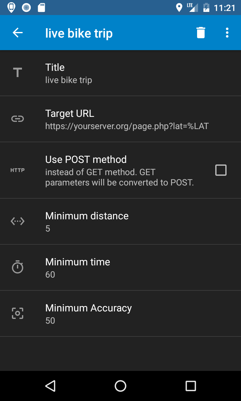 custom server (GET or POST HTTP requests). PhoneTrack app can also be remotely