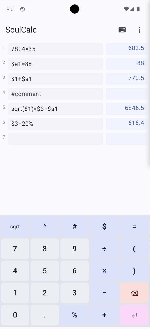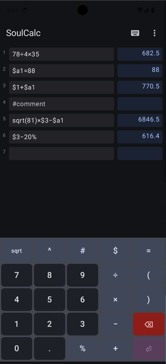 SoulCalc is a notepad-style calculator that combines the simplicity of a basic calculator with the flexibility of a text editor.