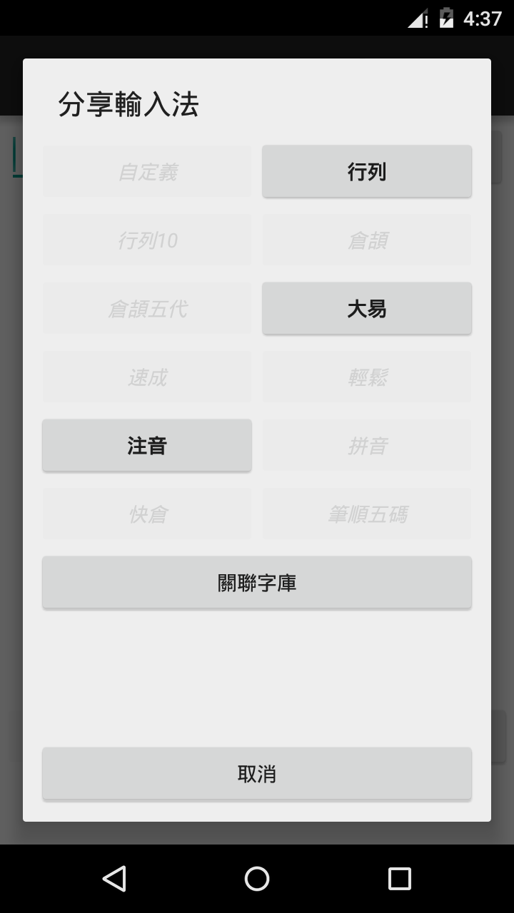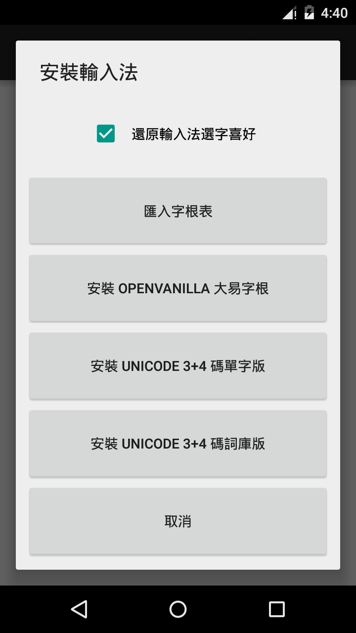 Sweetlime supports Zhuyin/Bopomofo, Cangjie, Wubi, Pinyin and more Chinese input methods.