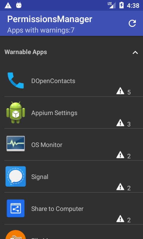Warns user about dangerous permissions given to installed apps