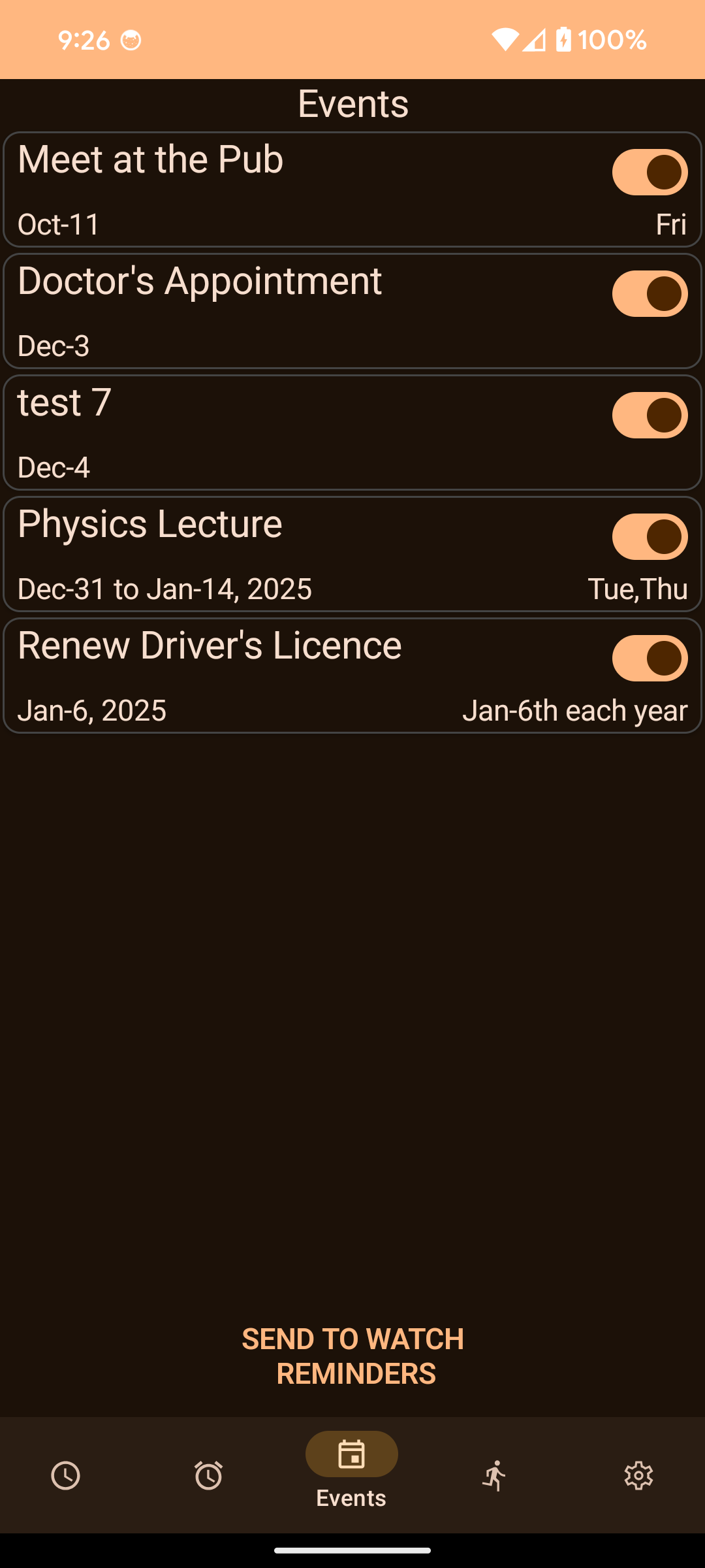 - Send to Watch: Pushes these events to the watch's Reminder feature.