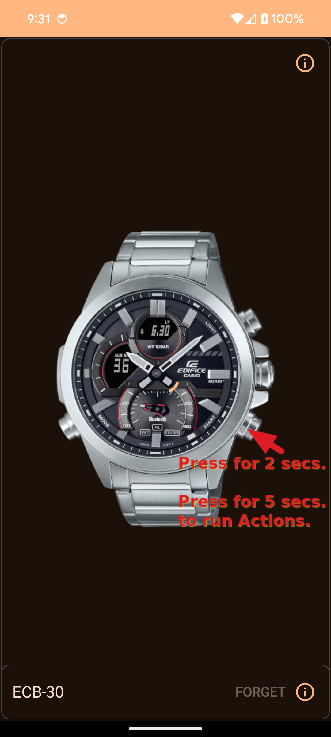 - Scan/Connect: Automatically scans for your watch.