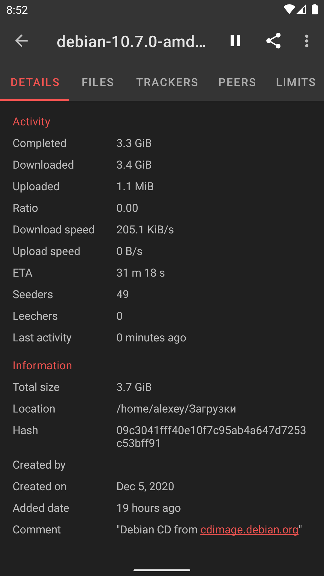 Fixed restoration of torrent adding parameters (download directory, etc) when adding torrent file