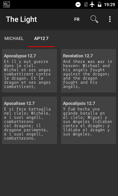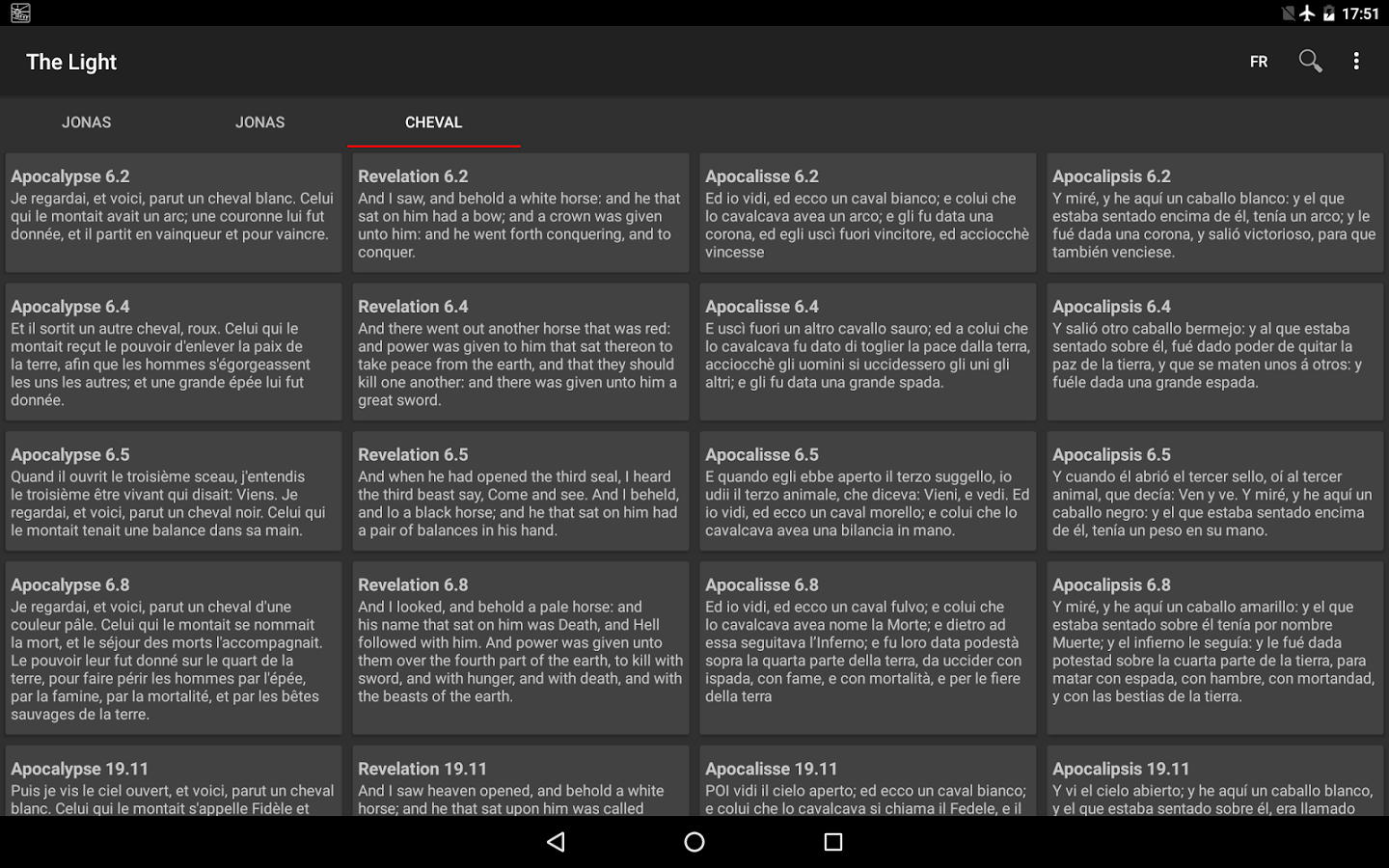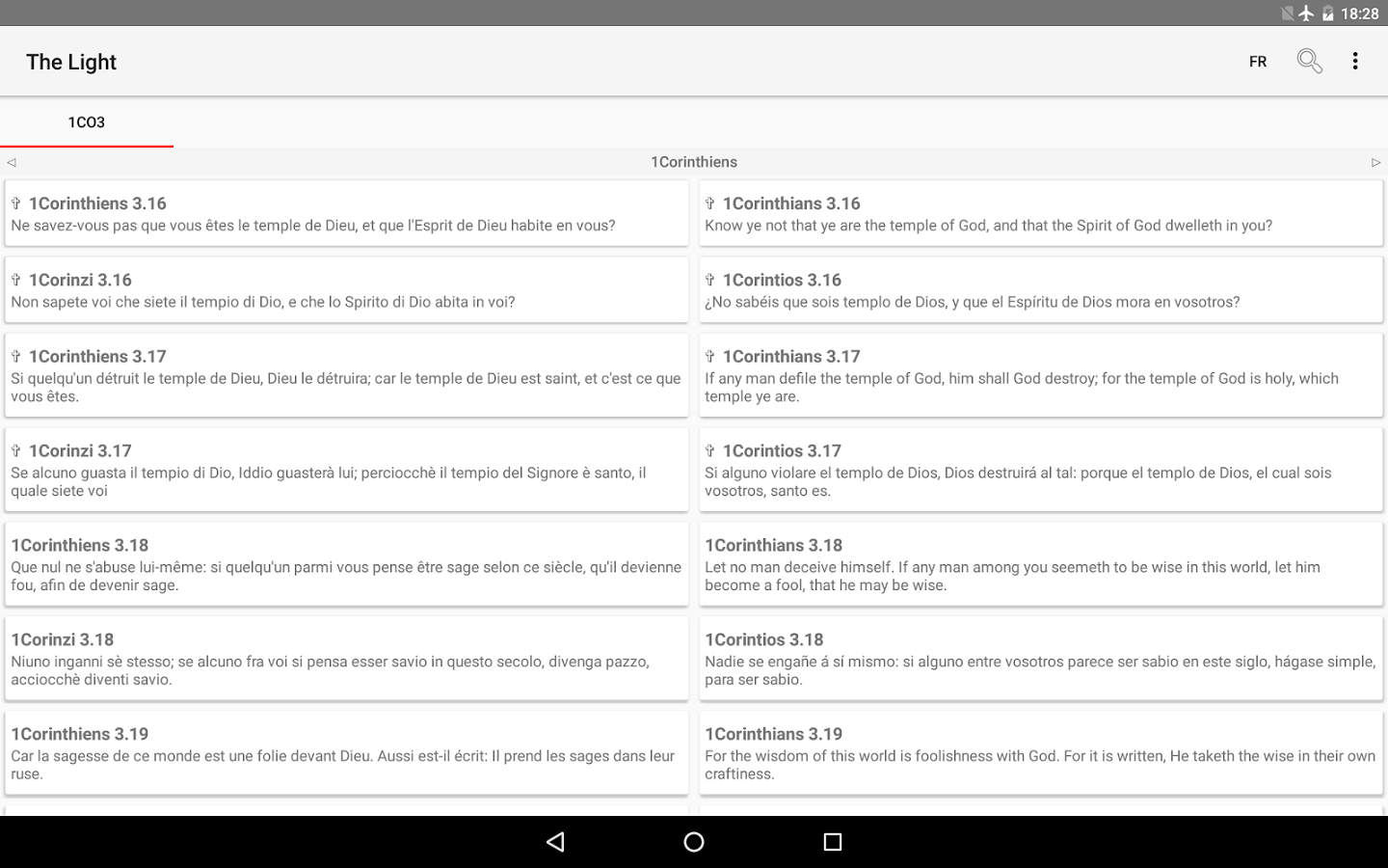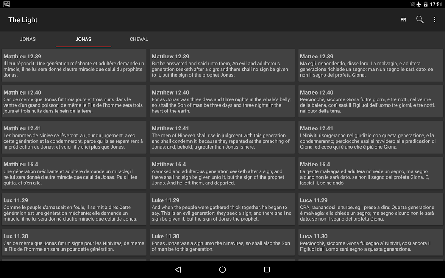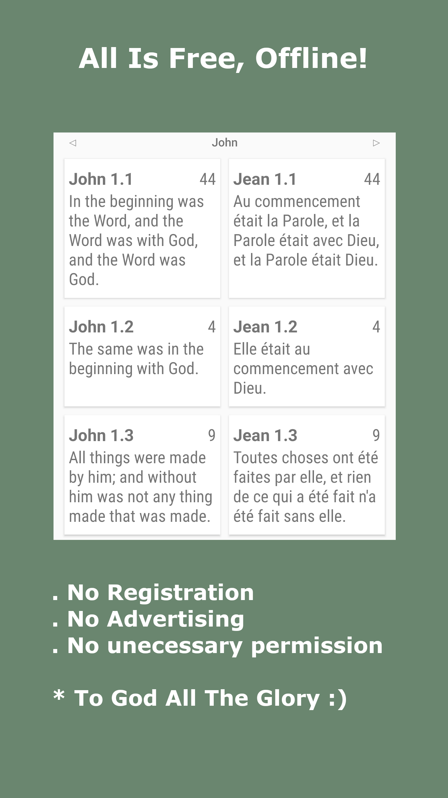 Bible multi languages, free, offline, no advertising, completely in English, French, Italian, Spanish, Portuguese, Hindi.