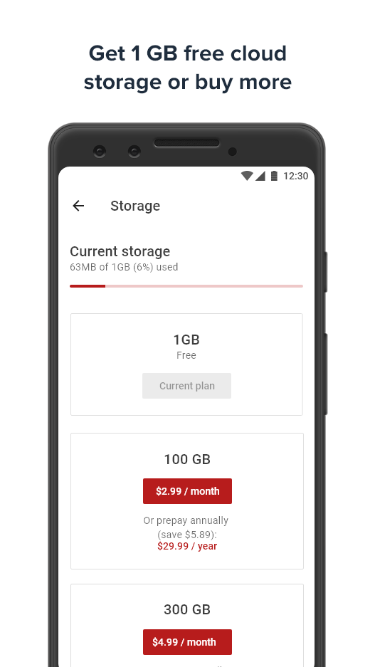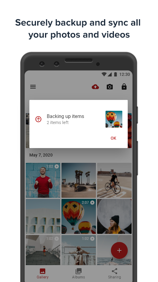 * Backup and sync functionality. All your photos & videos are backed up in the background to the cloud and synced to other devices using the same account
