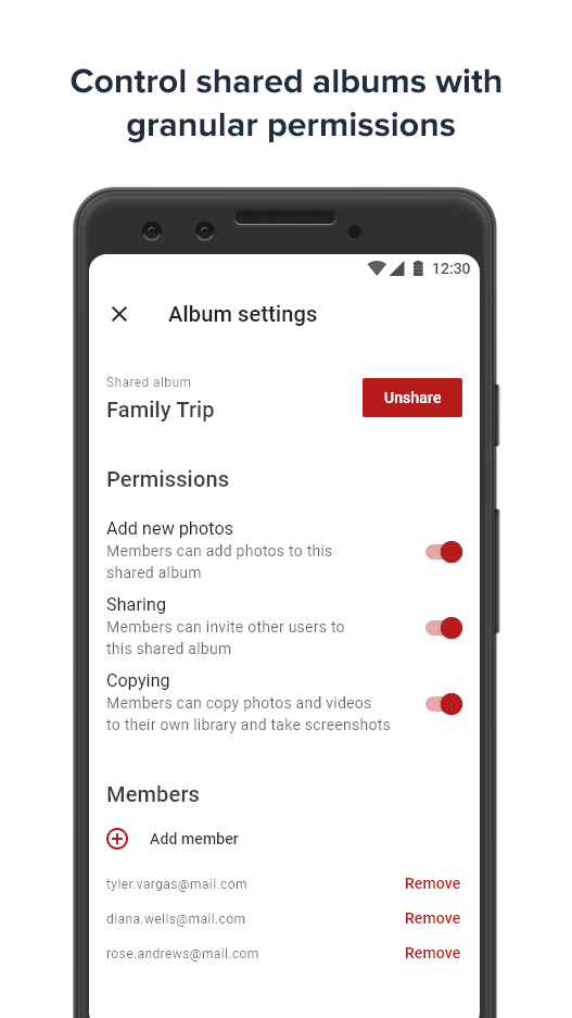 * Secure sharing. You can share photos and videos with friends and family with strong end-to-end encryption.