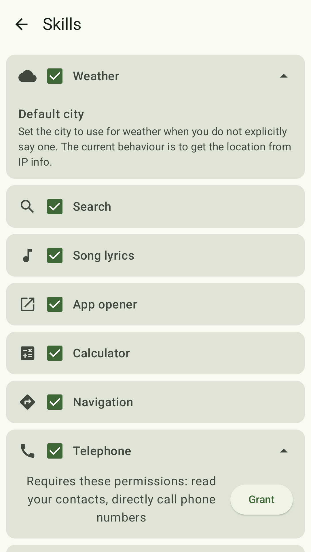 NonFreeNet anti-feature because some skills use non-free services to obtain the information requested by the user. You can easily disable unwanted skills or choose alternative services via settings.