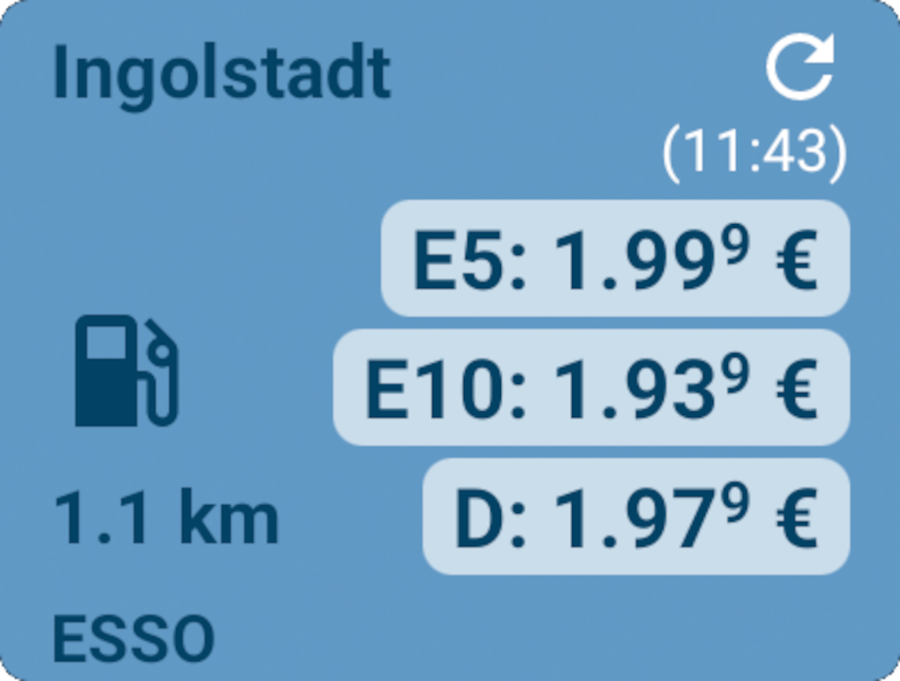 Clicking on a gas station in the list or on the icon in the widget shows the gas station in an external map application.