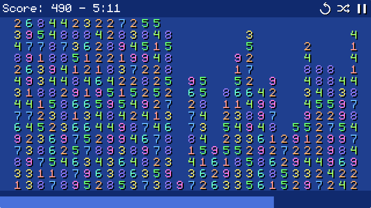 A simple but addictive puzzle game. Your mission is to match numbers such that they add up to 10. Simply tap and drag to make a selection and make sure the numbers add up to 10!