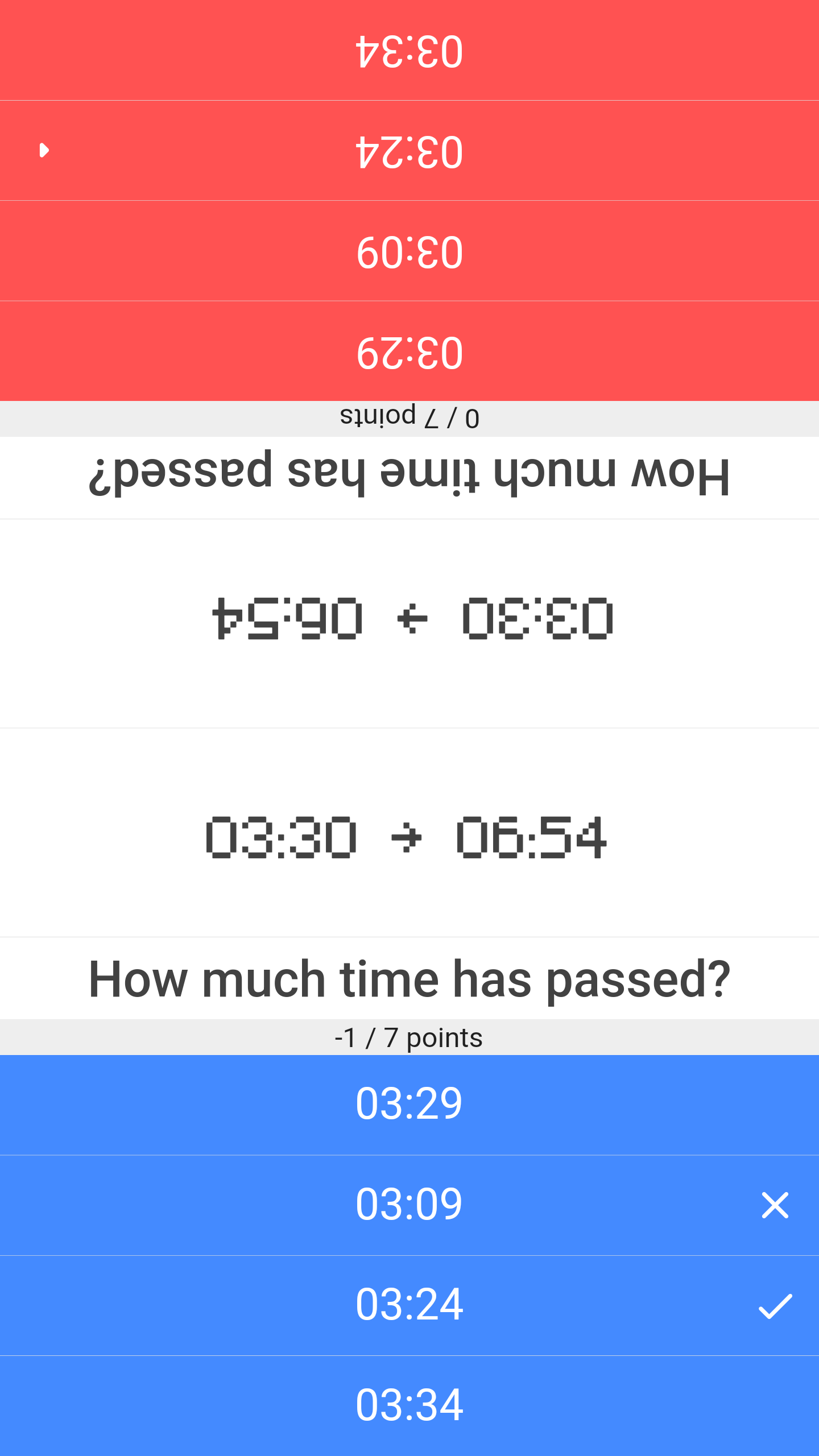If the answer is correct you score a point, otherwise you lose one.