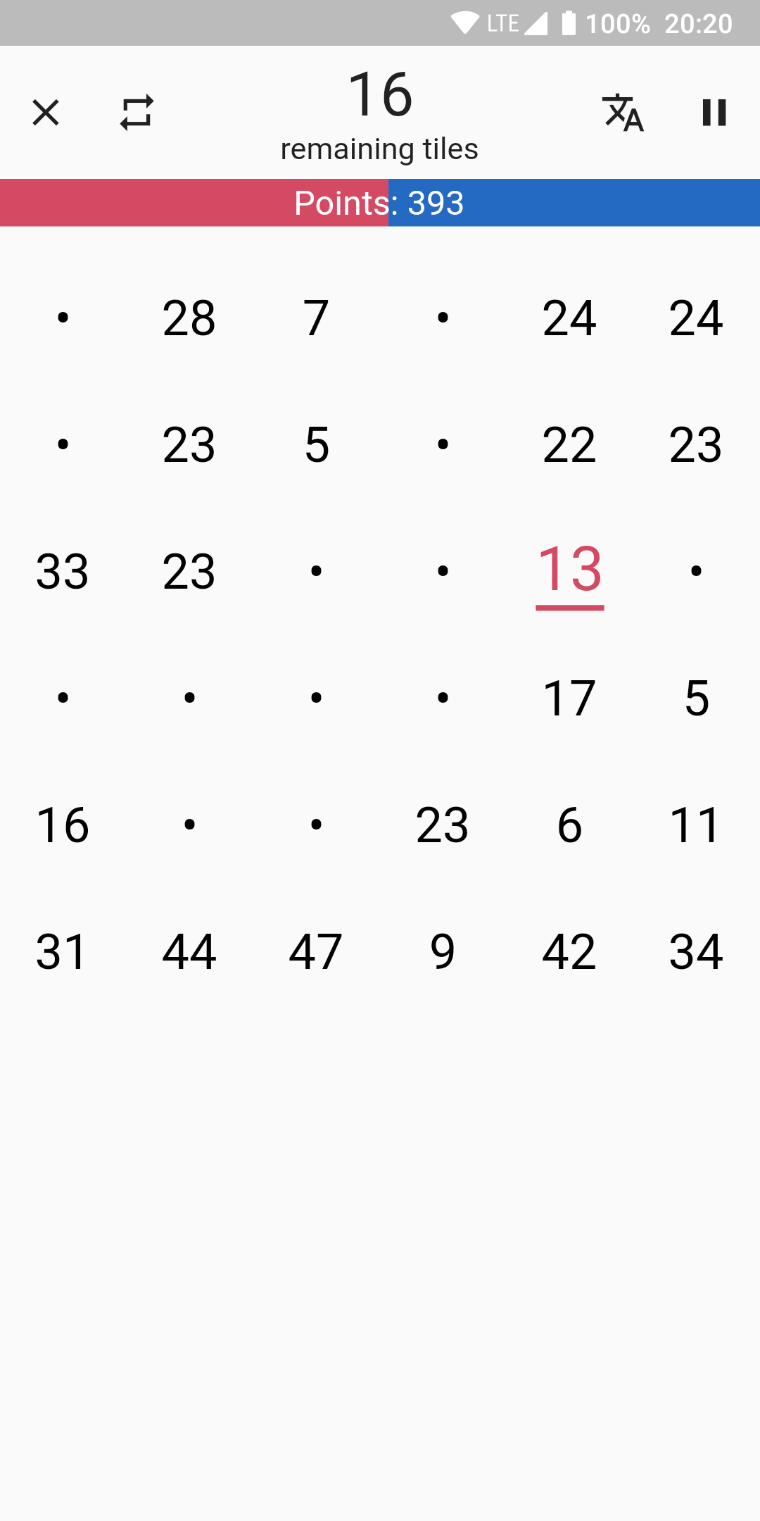 - If the value of a tile becomes equal to zero, starting tile value becomes zero too. Tiles have been "Deleted".