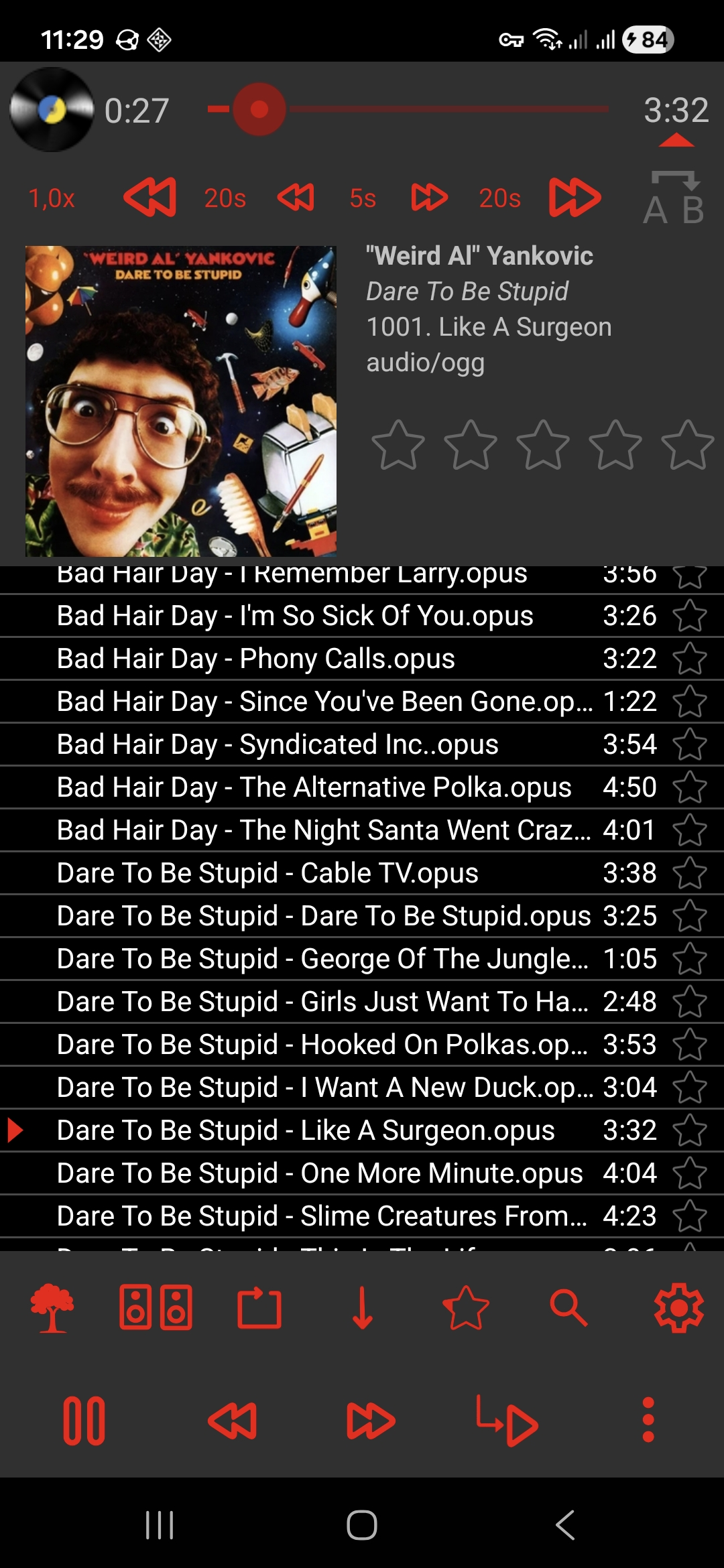* Multiple shuffle modes, multiple song repeatition options, A-B looping, set playback speed